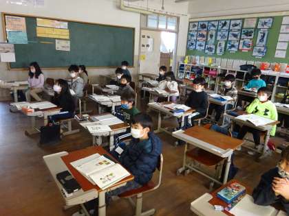 じゅぎょう中,きゅうに「きんきゅうじしんそくほう」がながれました。