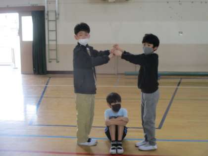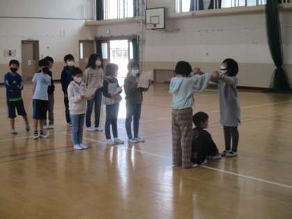 3年生とは「木とリス」というゲームをして遊びました。3年生とは思えないほどのしっかりとしたルール説明や実演のおかげでスムーズにゲームを始めることができました。3年生と6年生が混ざった素敵な木とリスの組み合わせができ,ほほえましい時間になりました。