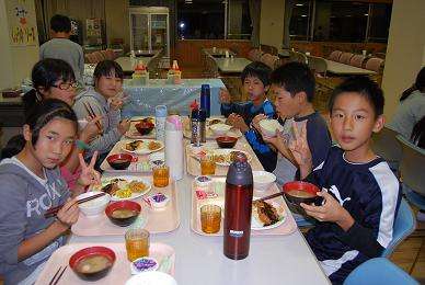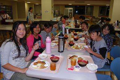 食堂で夕食を食べました。体を動かしているのでずいぶんとおなかがへっていました。食欲もりもりです。明日は登山です。まずは食べないと元気が出ませんからね。