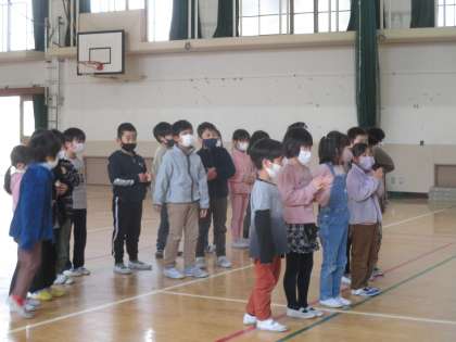1年生は6年生とジャンケンゲームで対戦しました。どちらの学年も目一杯楽しんでいました。卒業すると遊べなくなると思うととても寂しいですね。あと数日,6年生とたくさん関わっていきたいと思います。