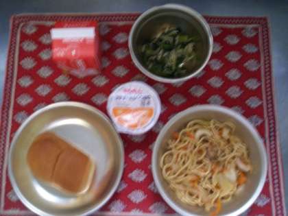 今日の給食は,小型パン・牛乳・ソース焼きそば・切り干し大根のいためナムル・みかんゼリーでした。切り干し大根のいためナムルは,切り干し大根のしゃきしゃきとした歯ごたえがあり,酢の味もきいて,暑いときの食べやすいメニューでした。