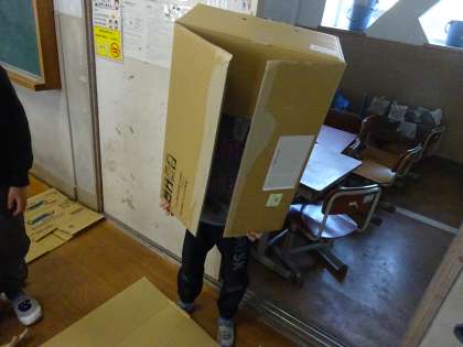 だんボールに入ってみて「どうくつみたい」「のりものみたい」とかんじたことを,ためしてみました。