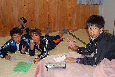 3日目最初の活動は「お便りタイム」でした。葉書に宛名や住所を丁寧に書いて,裏面にはこちらでの活動の様子や感想,家に帰ってからの願いなどを書いていました。早く書きあげた子どもたちは,楽しいおしゃべりをしたり,オセロや将棋をしたりしてリラックスした時間を過ごしていました。