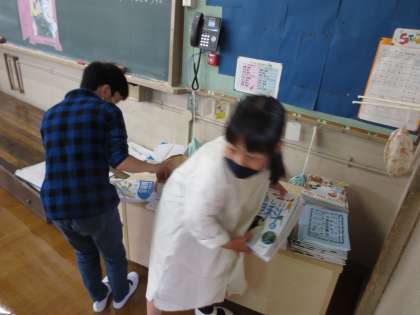 大量にある教科書の配布を自ら進んでお手伝いしてくれました。