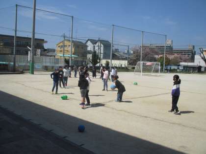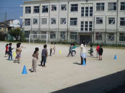 中間休みに外遊びをする子どもたちが多かったです。担任や担当の先生と遊ぶ姿は,いいものですね。
