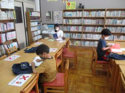 今日は今年度初めての図書室へ行ってきました。まだ残念ながら本の貸し出しが始まっていないので,今日は図書室や視聴覚室で読書をしました。ソーシャルディスタンスを意識しながら静かに本を読むことができました。