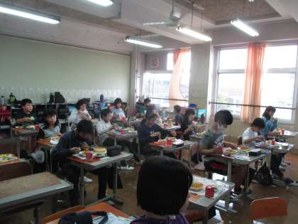 給食が始まりました。給食が始まると,学校が始まった気がします。子どもたちは今日の給食を楽しみにしていたようで,朝から話題になっていました。
