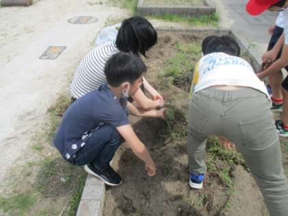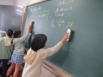 今日はクラスの中にステキなお手伝いさんが現れました。まず1枚目の写真は,授業後に次の時間に向けて黒板をきれいにしてくれています。先生のマネをしてきれいにしようとしてくれていた姿がとてもかわいく見えました!おかげさまで次の時間も気持ちよく学習ができました。2枚目の写真は,先生と一緒に理科の学習で使用する畑を手入れしている様子です。昼休みの遊びたい時間だったはずが,自発的に先生のお手伝いをしてくれていました。その姿を見て,さらにメンバーが増えたのがさらにステキでした!