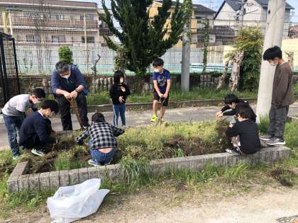 朝の時間に,学校園の草むしりをしていると,何人かの3年生が「一緒にやります!」とすすんで手伝ってくれました。優しい姿に心が温かくなった瞬間でした。これから理科の学習で植物を育てていきます。元気に成長するといいですね。