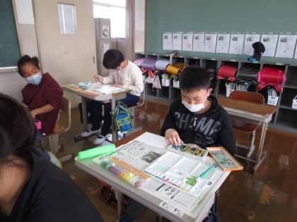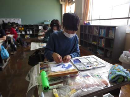 クレヨンと絵の具を利用して色々な模様を描きました。