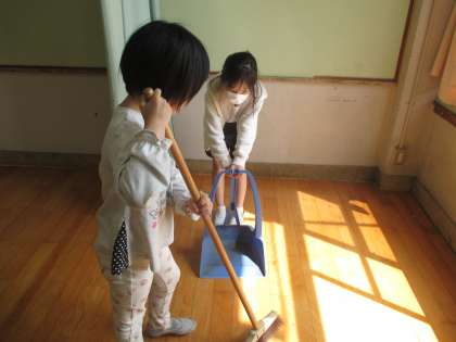 そうじ時間は,教室・ろうか・プレイルームにわかれてそうじをがんばっています。きれいになると気持ちがいいですね!