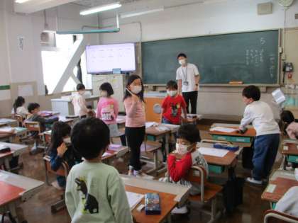 今日の平仮名は「ち」でした。ゆっくりとていねいになぞった後は,「ち」の付く言葉探しです。身の回りの「ち」の付く言葉をたくさん発表することができました。