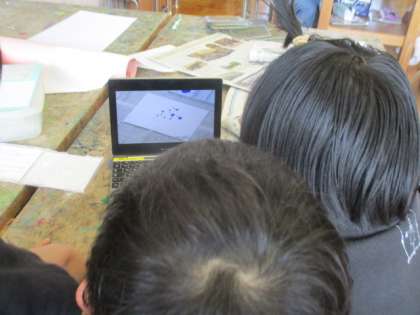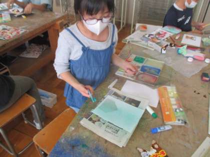 今日は今年度初めての図工の学習でした。さっそく図工室に行き,絵の具といろいろな道具を組み合わせて,もようづくりをしました。プチプチを使ってみたり,歯ブラシと金網を使ってみたり,それぞれの発想でいろいろなもようを描くことができました。困ったときは,GIGA端末で図工長先生の動画を見て確認して,いろいろな表現方法を試していました。