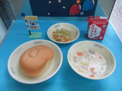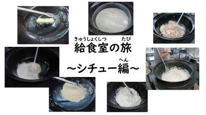 「シチューがおいしかったよ!」と,おいしかったという気持ちをたくさん伝えてくれました。また,給食室でどのようにシチューが作られているのかを動画にして,子どもたちに伝えました。感謝してたべることの大切さを感じたようでした。