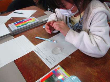 理科の交流の様子です。ひまわりとホウセンカの種を,よく見て,触って,しっかり観察し,カードにかくことができました。