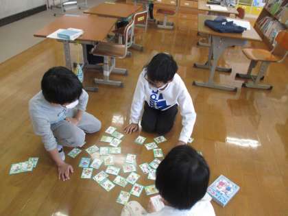 かるた遊びをしました。担任が読もうとしたら,「私が読みます。」と立候補者が。上手に読んでくれたので,楽しく盛り上がることができました。