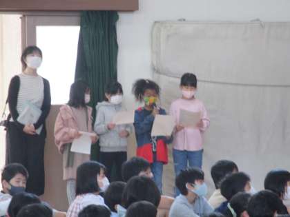 前期児童会代表を決める選挙の結果を全校児童に伝えました。