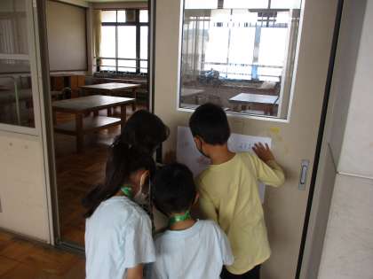 今日の生活科の時間では,学校たんけんにでかけました。なかよし班の2年生が学校を案内してくれました。「どんな教室で,どんな人がいて,どんなものがあるか」をポイントにたんけんしました。2年生が上手に案内してくれたので,学校のことが少し分かってきたようです。
