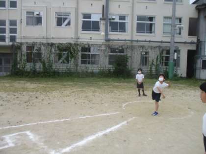 今日から4年生では,新体力テストが始まりました。数日間に分けて,いろいろな項目を測定していきます。今日はソフトボール投げに取り組みました。投げる角度や足の使い方などをみんなで確認したこともあってか,昨年よりもぐんと記録が伸びた子たちが多かったです。