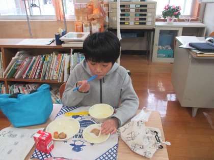 今日の給食は外郎でした。給食前からワクワクしていた子どもたち。給食クイズは「ういろう」の漢字クイズでした。珍しい読み方にびっくりしていました。おかわりまでして,しっかり完食できました。