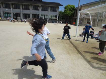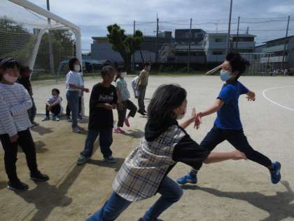 休み時間にクラス全員でリレー遊びをしました。
