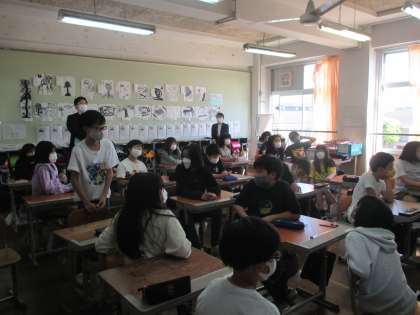 左京税務署の方がゲストティーチャーとして来てくださり,税金についての勉強をしました。お話やアニメを通して,税金はみんなが安心して過ごせるための助け合いということがわかりました。質問も積極的にして,よくがんばっていました。