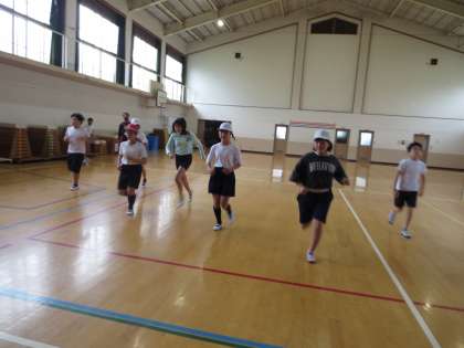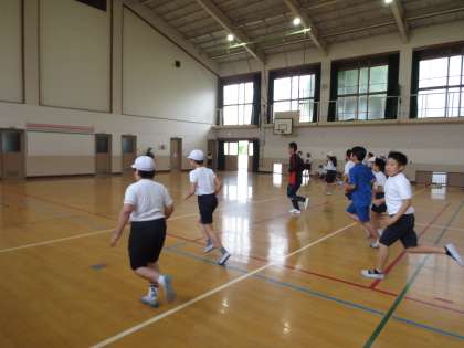 シャトルランを5年生と一緒に行いました。