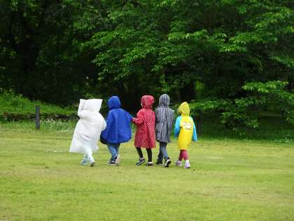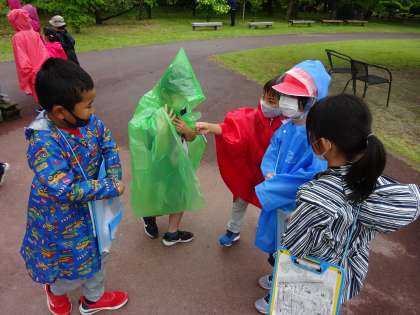 雨が すこしふっていたので,レインコートをきて しゅっぱつ!