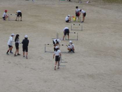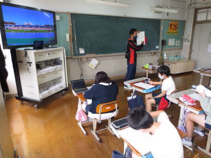 実際に走る前に動画で踏み切り足やインターバルなどのポイントを確認しました。