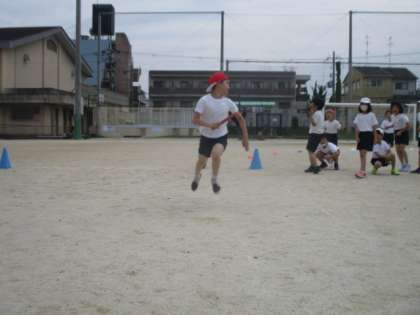体育の後半の時間には,リレーを1レースしました。毎時間大接戦を繰り広げるリレーですが,今日もかなりの接戦でした。最後は赤チームがわずかにリードしてのゴールでしたが,どちらのチームもバトンのミスなく,繋ぎ切ったところがとてもよかったと思います。