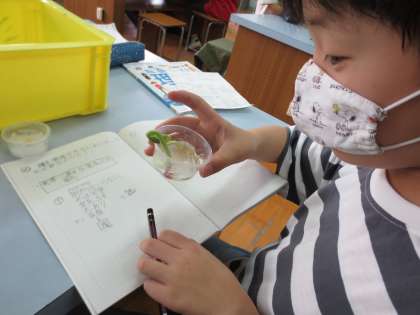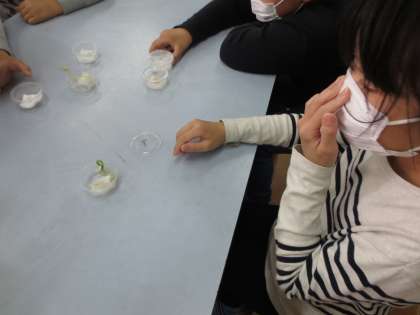 水や空気など発芽に必要なものを調べる実験をしました。