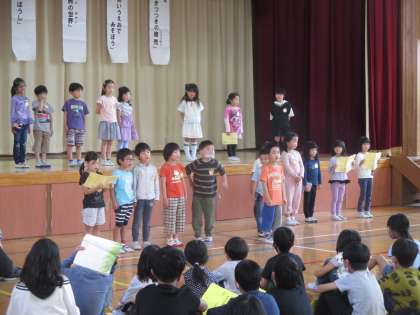 初めての音読発表会でした。大きな声でしっかり読むことができましたね。おうちの人もたくさん見に来てくれて,うれしかったね。本当によくがんばりましたね。