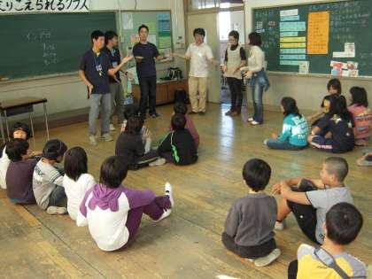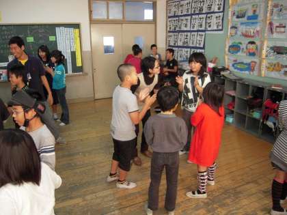 インプロの授業の目標は「楽しい」「夢中で遊べる」「笑顔になれる」ことです。そして,その良さは「その場を共有する多くの人とかかわり合いながら,楽しさを共有し,夢中になり,笑顔になれること」「そこに,人との『出会い』『ふれ合い』があり,その中から得られる『学び』があること」です。