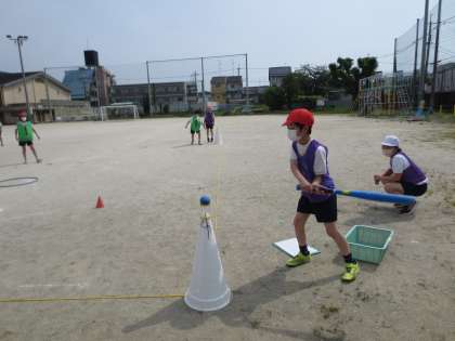 ルールを多少アレンジしていますが,ボールをバットで思い切り打つ爽快感は子ども達的にも気持ちが良いもののようです。