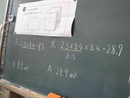 面積や体積を求める公式が小数でも使えるかを調べました。