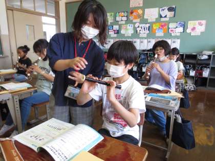 手話をしながら歌ったり,リコーダーを練習したりしています。