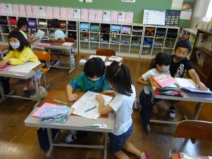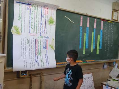 時間をあらわす言ばや,「〜ます。」「〜のです。」などの 文まつ,ちえとわけのじゅんじょなど,さがすためのヒントをたくさん見つけました。