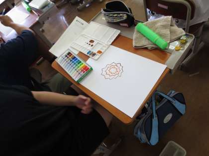 以前にも行っていた効果音から想像を膨らませて絵を描く活動の続きです。