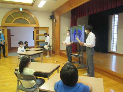 24日(火)養正サテライト見学に行きました。東山総合支援学校のお兄さん・お姉さんにサテライト施設の説明をしていただきました。環境についてのお話を聞いたり,図書館で読み聞かせをしてもらったり,喫茶では実際にサービスを体験させていただいたり,子どもたちにとって,とても楽しい時間となりました。今後も交流を続けていきたいと思います。