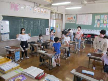 今日は,今年度初めてのようせいタイム(縦割り活動)の時間でした。6年生を中心にしながら1〜6年生のみんなで自己紹介をしたり,からだじゃんけんをしたりして,顔合せをしました。次回はエンジョイスマイルで今日決めたみんな遊びを楽しみたいと思います。
