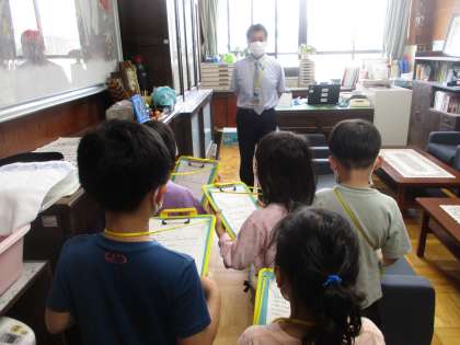 生活科の時間では,1年生だけで学校たんけんに行きました。2年生といった学校たんけんから,もっと詳しく知りたい場所に行きました。それぞれの部屋の先生に質問したり,中に入ってじっくり見たりすることもできました。熱心にメモをしている子もいました。どんなことが分かったのか,次の時間に発表します。