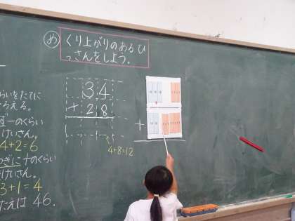 十のくらいに くり上がりのある ひっさんをしました。