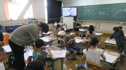 図画工作科では,今月の絵の制作に取り組んでいます。季節の様子をイメージしながら,コンテやクレヨンの使い方を工夫して,丁寧に仕上げようとする姿が見られました。