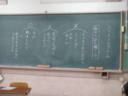 担任のデモンストレーションを元に良い話の聞き方と,悪い聞き方を考えました。