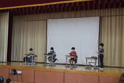 にこにこ集会がありました。今回はにこにこ学習のふり返りの他にも,3年生としての発表もありました。3年生での学習,今こんなことを頑張っていると知ってもらえるように発表をしました。練習時間は2日間という短い時間でしたが,それを感じさせない素晴らしい発表でした。声も表情も輝いていました。終わった後の達成感のある表情もとてもよかったです。