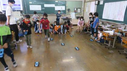 理科では,ゴムや風の力の学習に入りました。今日は,これから実験で使うゴムや風の力で動くおもちゃづくりをしました。最後には,実際にゴールのラインに向けて車を走らせる活動を行い,これからの学習に向けて気持ちを高めていました。