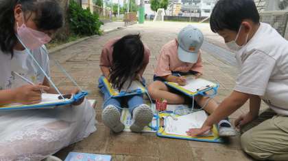 理科では,先日植えたツルレイシの芽を観察しました。大きさや成長具合は様々ですが,それぞれのペースで成長している姿を観察することができました。これからどのように成長していくのか楽しみですね。