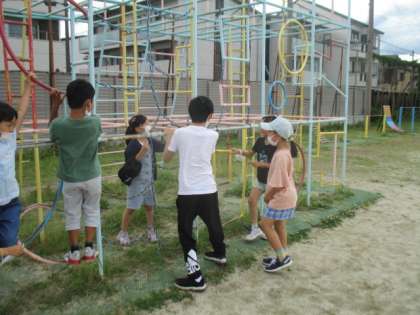 今日のロング昼休みは,えのき学級との交流遊びでした。えのき学級のお友だちが提案してくれたケイドロをして楽しみました。4年生とえのき学級が混ざった2つのチームに分かれて,みんなで楽しく遊ぶことができました!