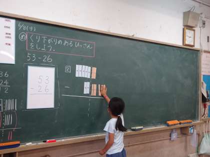 まず ひっさんでやってみる人,図をかいてみる人,言ばで せつめいする人など,それぞれの方ほうで もんだいをとくことが できました。