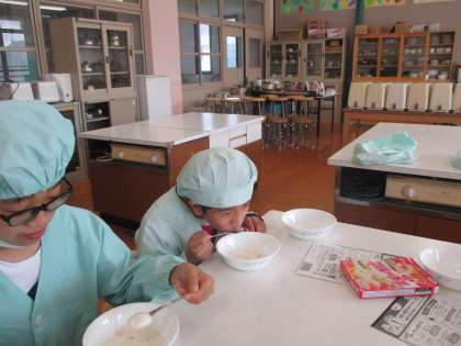 今回が今年度初めての家庭科室での学習でしたが,レシピの大切な部分を落とさず,しっかりデザートを完成させることができました。おいしくできて良かったですね。